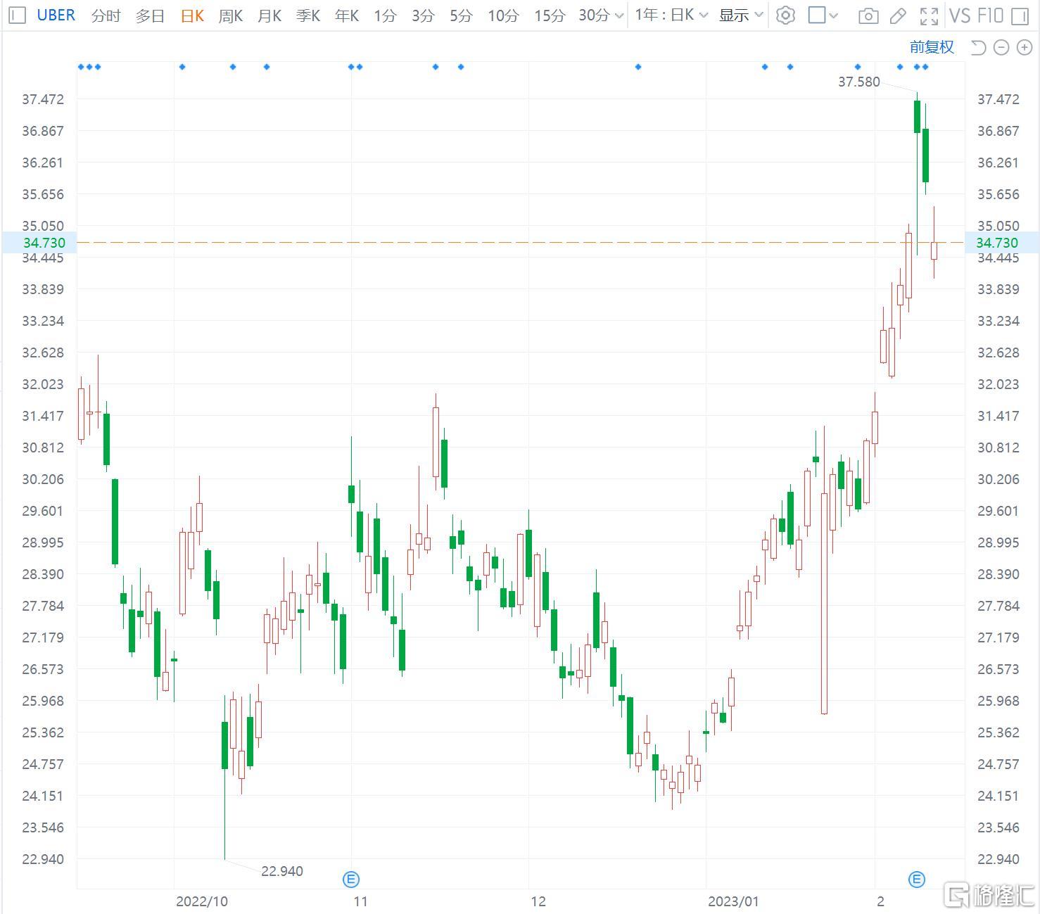 格隆汇2月11日丨优步跌3.07%,报34.79美元,总市值694亿美元。同行Lyft预计2023年第一季度调整后EBITDA仅...