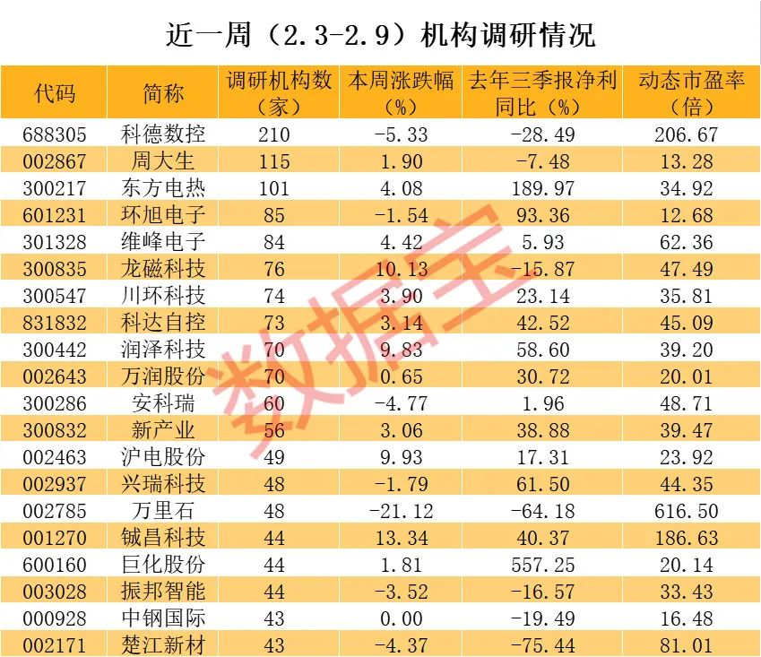 近一周机构调研个股数量有240多只,科德数控成为调研机构数量最多的股票。